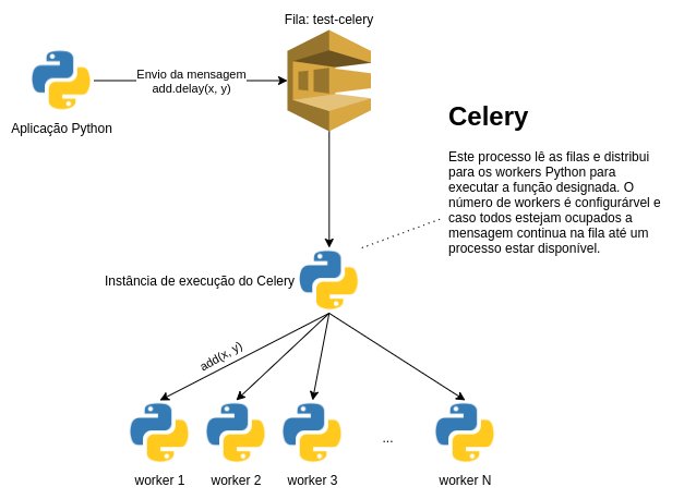 Assim a função será invocada através do Celery. Um desenho da arquitetura deste pequeno projeto pode ser visto aqui: